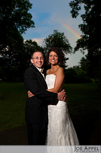 If you read the last post, then you know that it rained during Amy and Chris’ wedding last Saturday. But, if you looked on the bright side (which happened to be the other side of the pavilion) there was a rainbow.